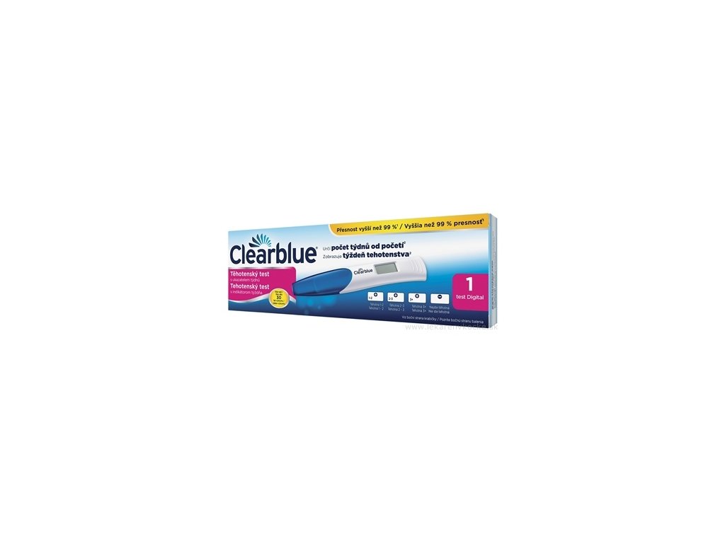 Těhotenský digitální test Clearblue s indikátorem početí umožňuje dvojnásobné potvrzení výsledku. Symbol na testu potvrdí nebo vyvrátí těhotenství a v případě potvrzení ukáže jak dlouho t.j. kolik týdnů přetrvává těhotenství (kolik týdnů je žena těhotná). Má moderní digitální displej, který dává snadno čitelné digitální výsledky.