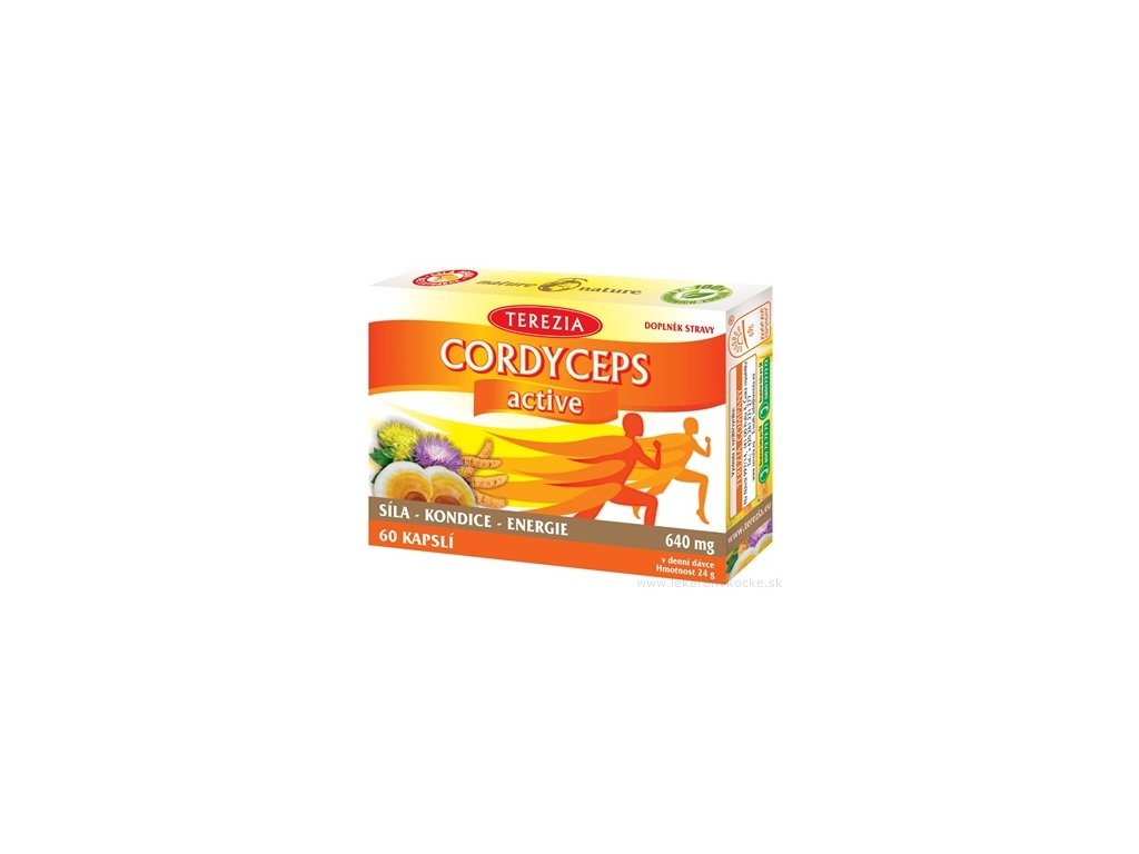 Cordyceps je vzácná houba, která roste v horských oblastech Číny, Tibetu a Nepálu. Existuje více než 500 druhů této houby, ale nejznámější a nejvzácnější je housenka čínská (Cordyceps sinensis). Je používána v tradiční čínské medicíně již více než 2000 let. Obsahuje polysacharidy (glukany), vlákninu a další vzácné biologicky aktivní látky. Rozchodnice růžová dodává tělu sílu a vytrvalost při sportovních výkonech. Houba reishi přispívá k přirozené obranyschopnosti organismu ak udržení zdravých oběhových funkcí. Leuzea saflorová zvyšuje adaptibilitu organismu v extrémních a stresových situacích, stimuluje duševní funkce a povzbuzuje tělo. CORDYCEPS active je tak vhodný pro všechny sportovce a aktivní osoby
