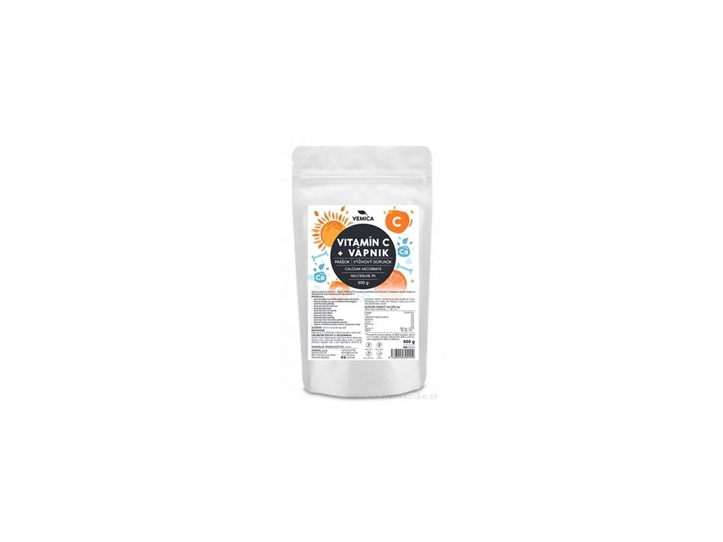 Doplněk stravy Vitamin C + Vápník VEMICA je Ph neutrální, prašková forma Vitaminu C obsahující Vápník, vhodná k zajištění zvýšené denní potřeby vitaminu C. Přispívá k :