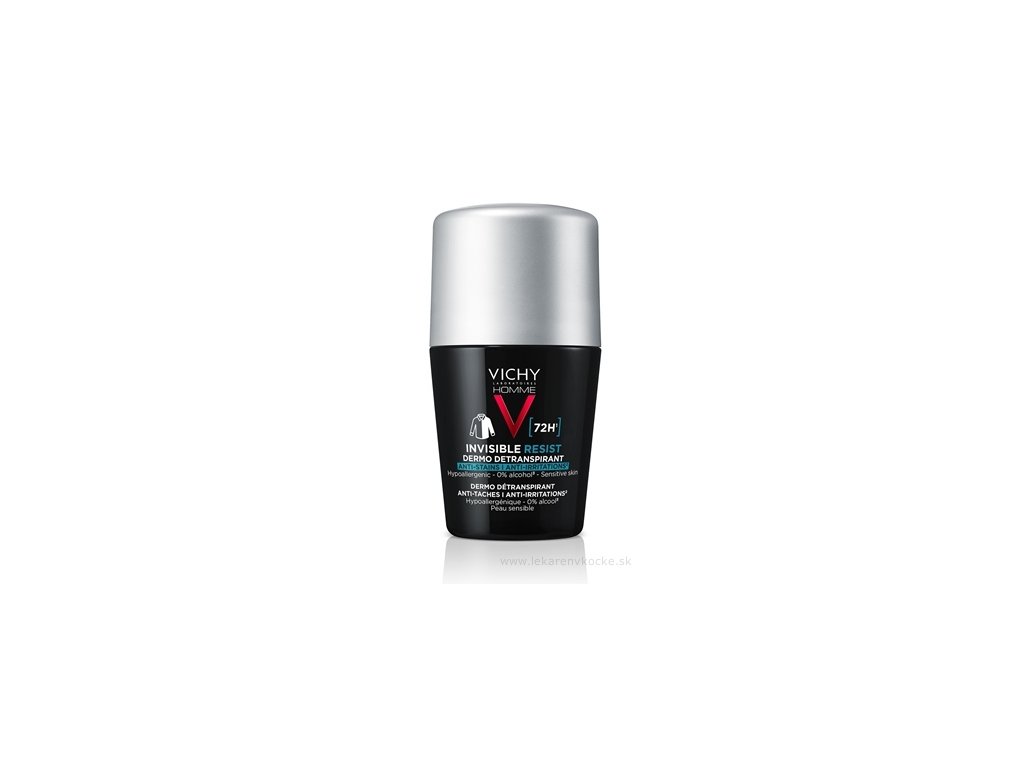 VICHY HOMME Invisible Resist 72H antiperspirant proti skvrnám i proti podráždění. Zabraňuje nadměrnému pocení a zároveň přináší okamžitý a dlouhotrvající pocit svěžesti.