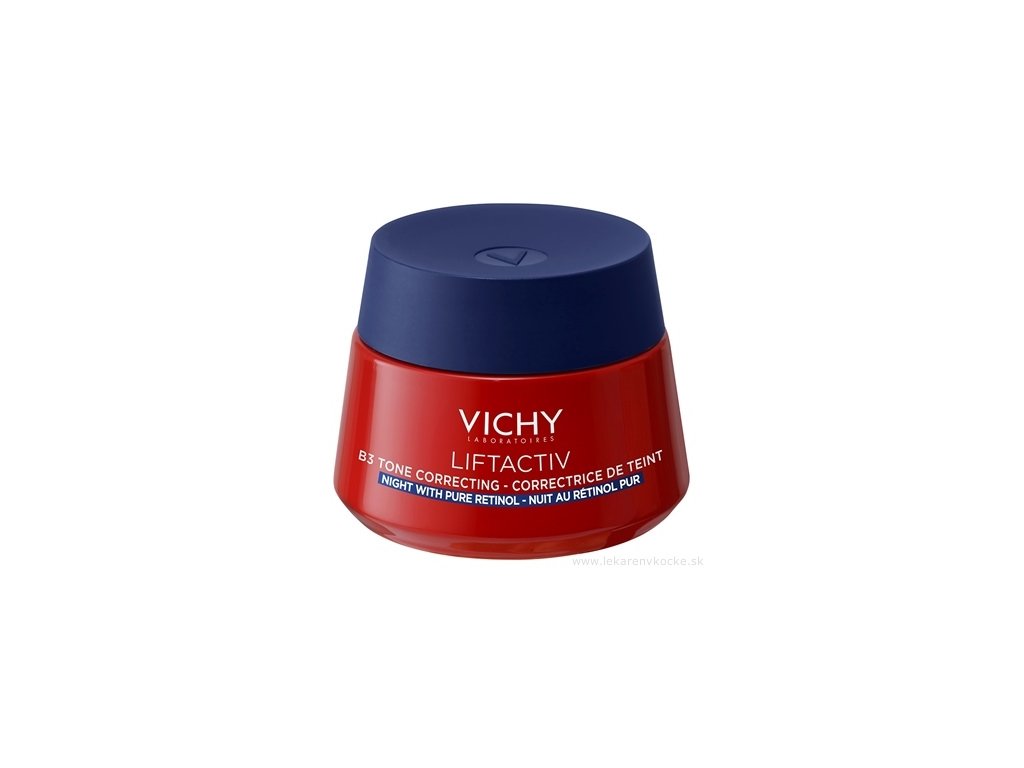VICHY LIFTACTIV B3 Noční tónovací krém s čistým retinolem pro obnovu buněk na hyperpigmentované pleti. VĚDA O EXPOSOMU: Nadprodukce melaninu je vyvolána expozicí vnějšímu podráždění během dne (UV záření, znečištění). Noc představuje ideální čas pro obnovu buněk na hyperpigmentované pleti.