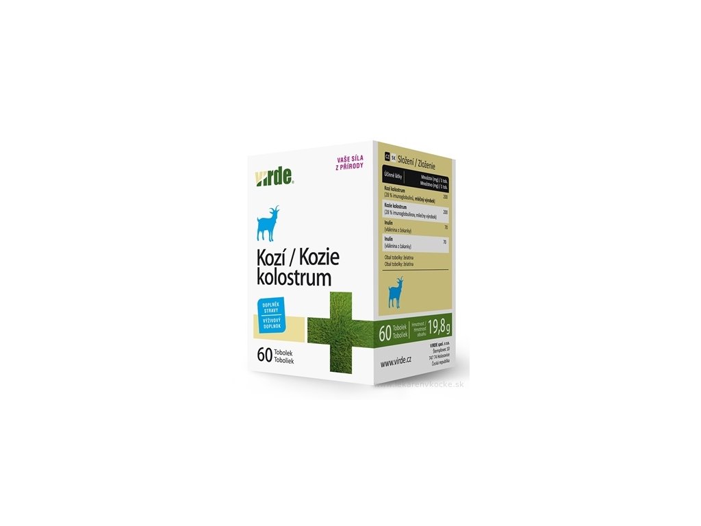 Složení 1 kapsle: kozí kolostrum (28% imunoglobulinů, mléčný výrobek) 200 mg, inulin (vláknina z čekanky) 70 mg.