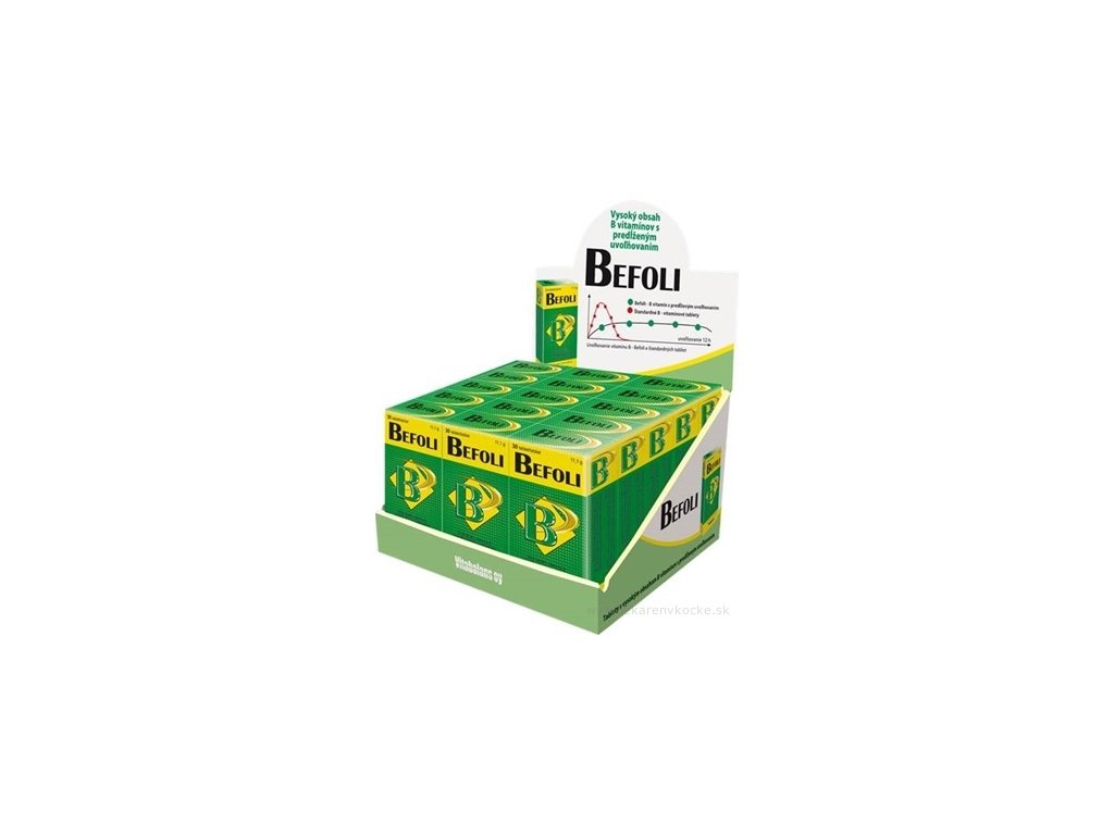 Befoli obsahuje nejdůležitější B vitamíny ve vysokých koncentracích. Kromě toho tableta je formulována tak, aby umožnila postupné uvolňování vitamínů, jejich lepší vstřebávání a prodloužený účinek.