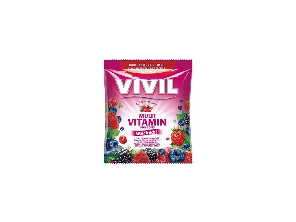 VIVIL MULTIVITAMIN-osvěžující bonbóny s příchutí lesního ovoce bez cukru s náhradními sladidly.