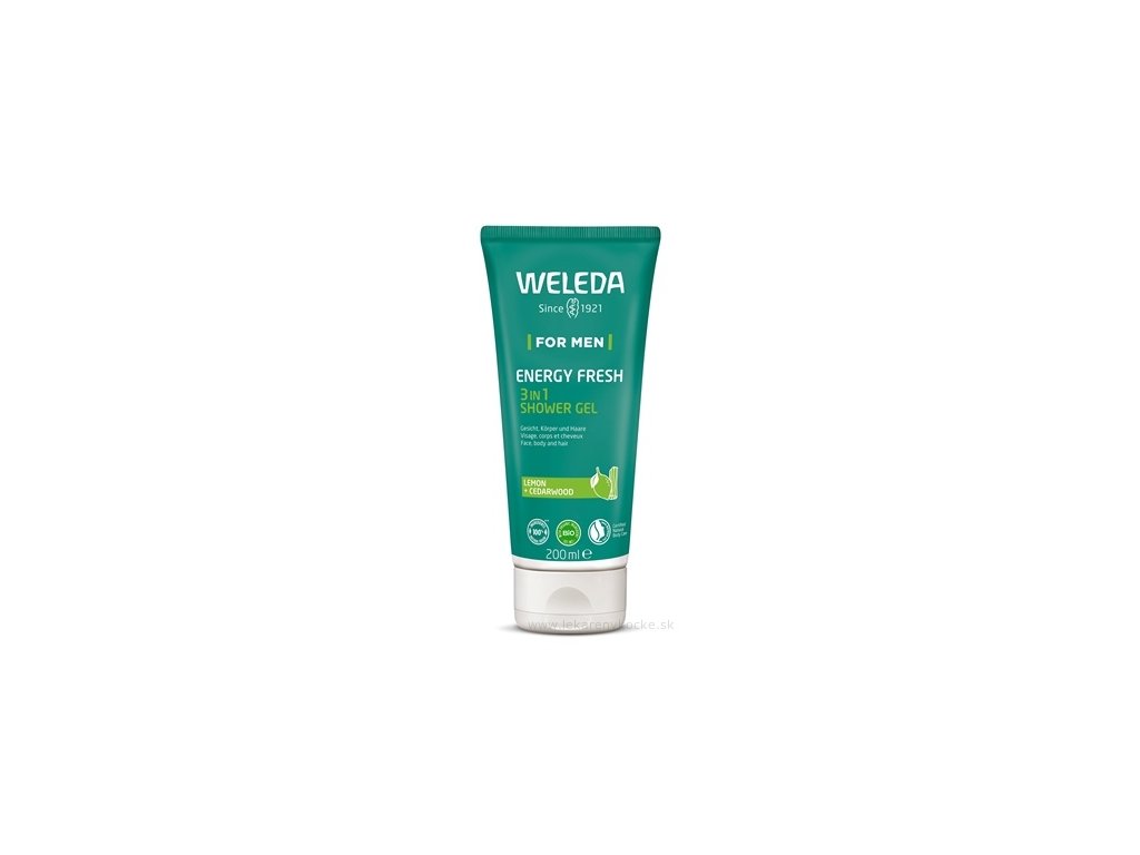 weleda for men 3v1, energizující sprchový gel mužský, citrusový sprchový gel pro muže, weleda men energy fresh, sprchový gel citrón cedrové dřevo, pánský gel 3v1