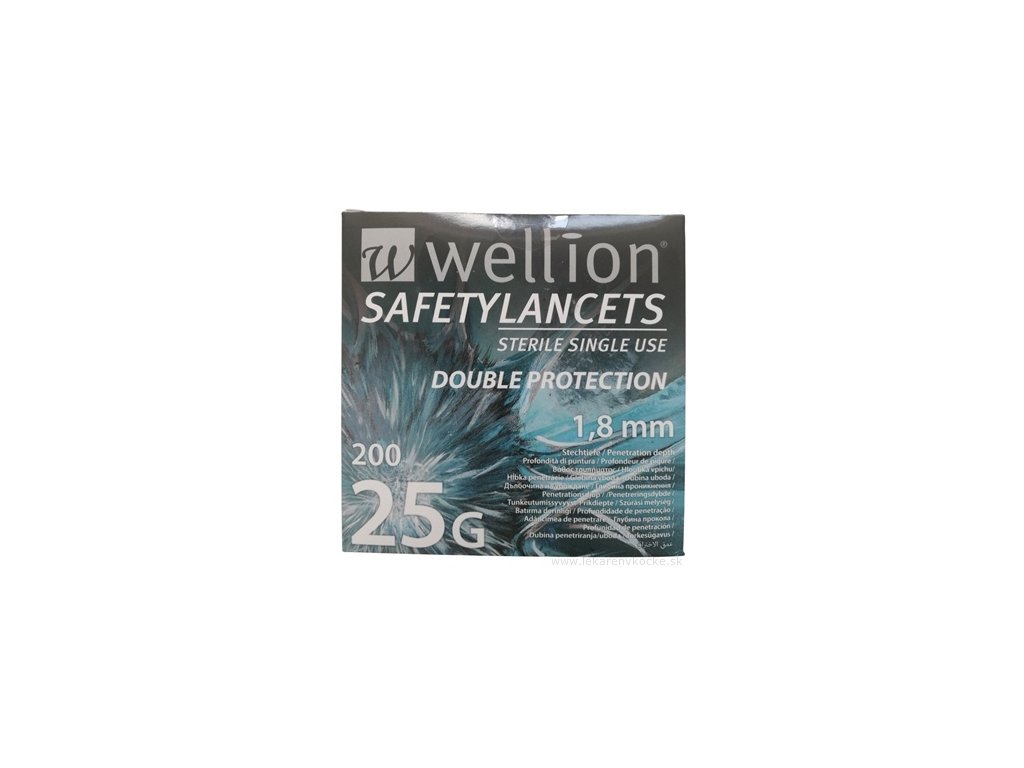 wellion safetylancets 25g, bezpečnostní lanceta 25g, lancety na odběr krve, jednorázové lancety, lanceta 1,8 mm, lancety pro diabetiky, odběr kapilární krve, sterilní lancety