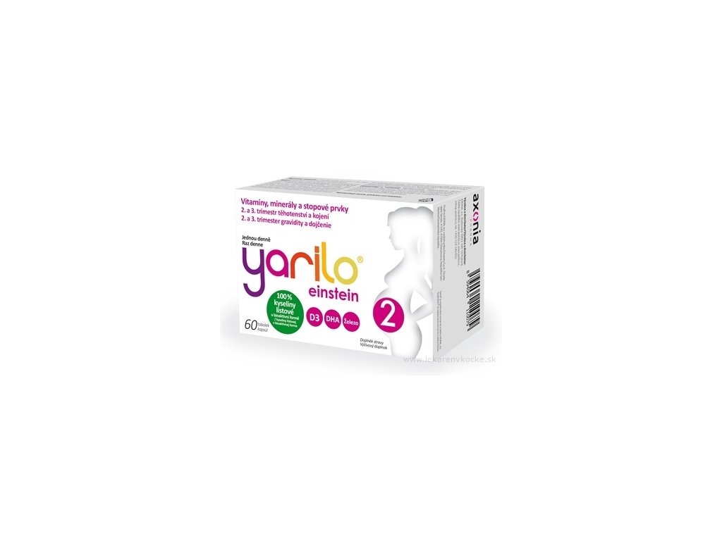 YARILO einstein 2 je specializovaný výživový doplněk vyvinutý pro potřeby žen v druhém a třetím trimestru těhotenství a během kojení. Obsahuje pečlivě vybrané vitamíny, minerály a stopové prvky, které podporují správný vývoj plodu a zdraví matky. Díky svému složení je ideální volbou pro doplnění potřebných živin v náročném období těhotenství a kojení.