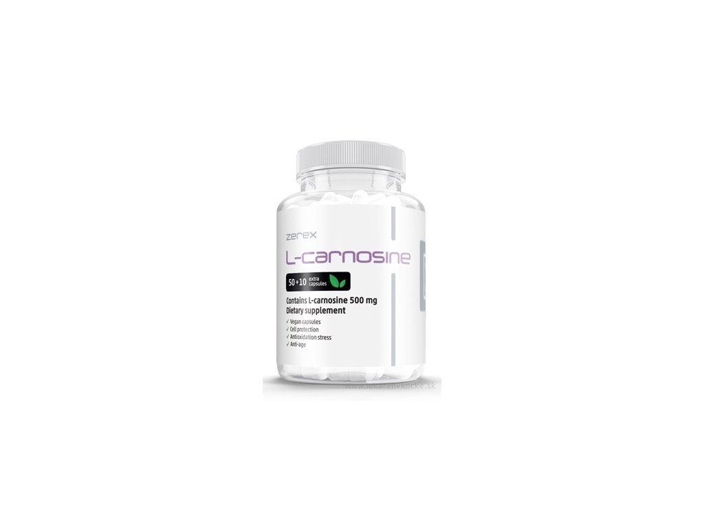 zerex l-karnosin, l-carnosine, karnosin doplněk, antioxidant kapsle, vitamin c a e, koenzym q10 doplněk, extrakt z hroznových semen, rostlinné kapsle, ochrana buněk doplněk